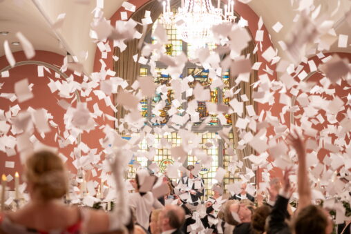 Legendär sind dabei die Papierschlachten. Zwischen den Gängen während des Festessens werfen die Gäste mit Papierbällchen. Wer dabei „erwischt“ wird, darf eine Spende entrichten. Ursprünglich wurden allerdings „abgenagte Knöchelchen“ geworfen – dies wurde aufgrund der Flecken auf der Kleidung im 21. Jahrhundert abgewandelt.